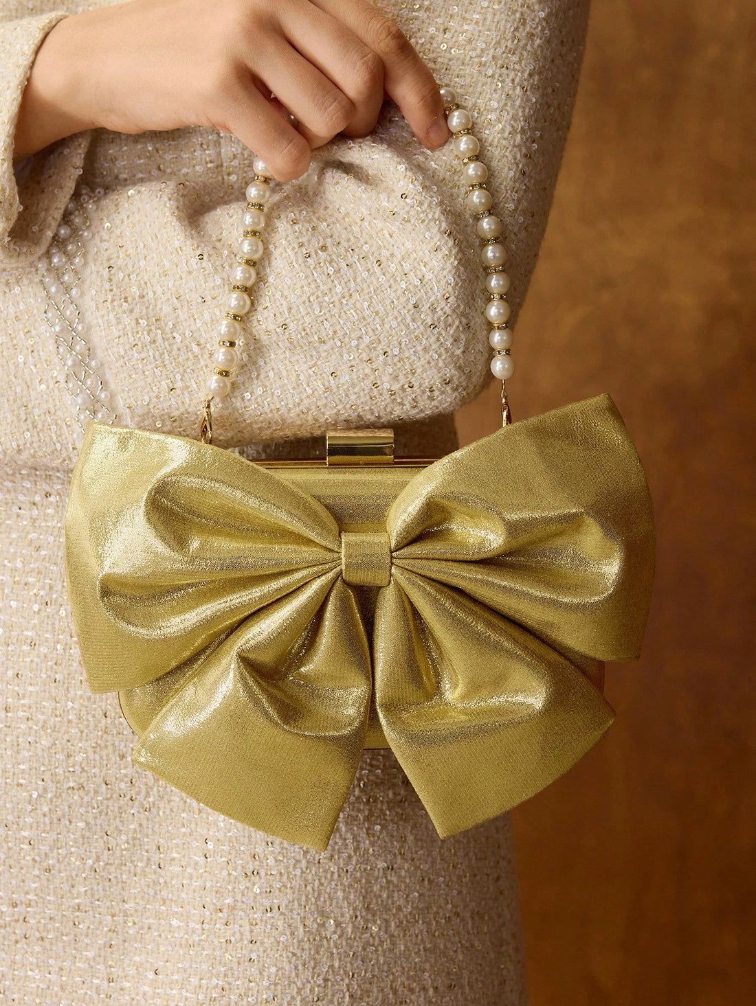 Details: Beaded, Bow, PearlsPattern Type: Colorful, ThingStyle: GlamorousColor: GoldStrap Type: Top HandleClosure Type: Kiss LockBag...
