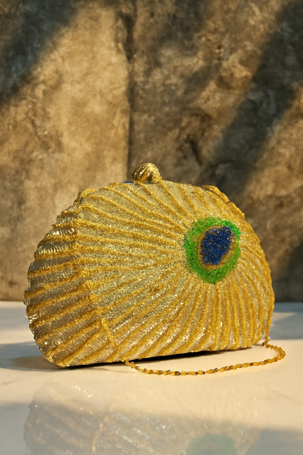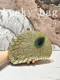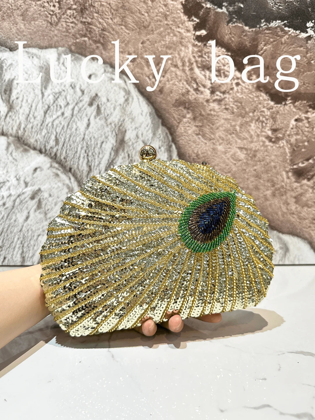 Peacock Blue Vintage Cheongsam Clutch – Sequin Birds Pattern, Elegant Evening Bag for Weddings, Parties & Formal Events-Golden