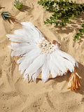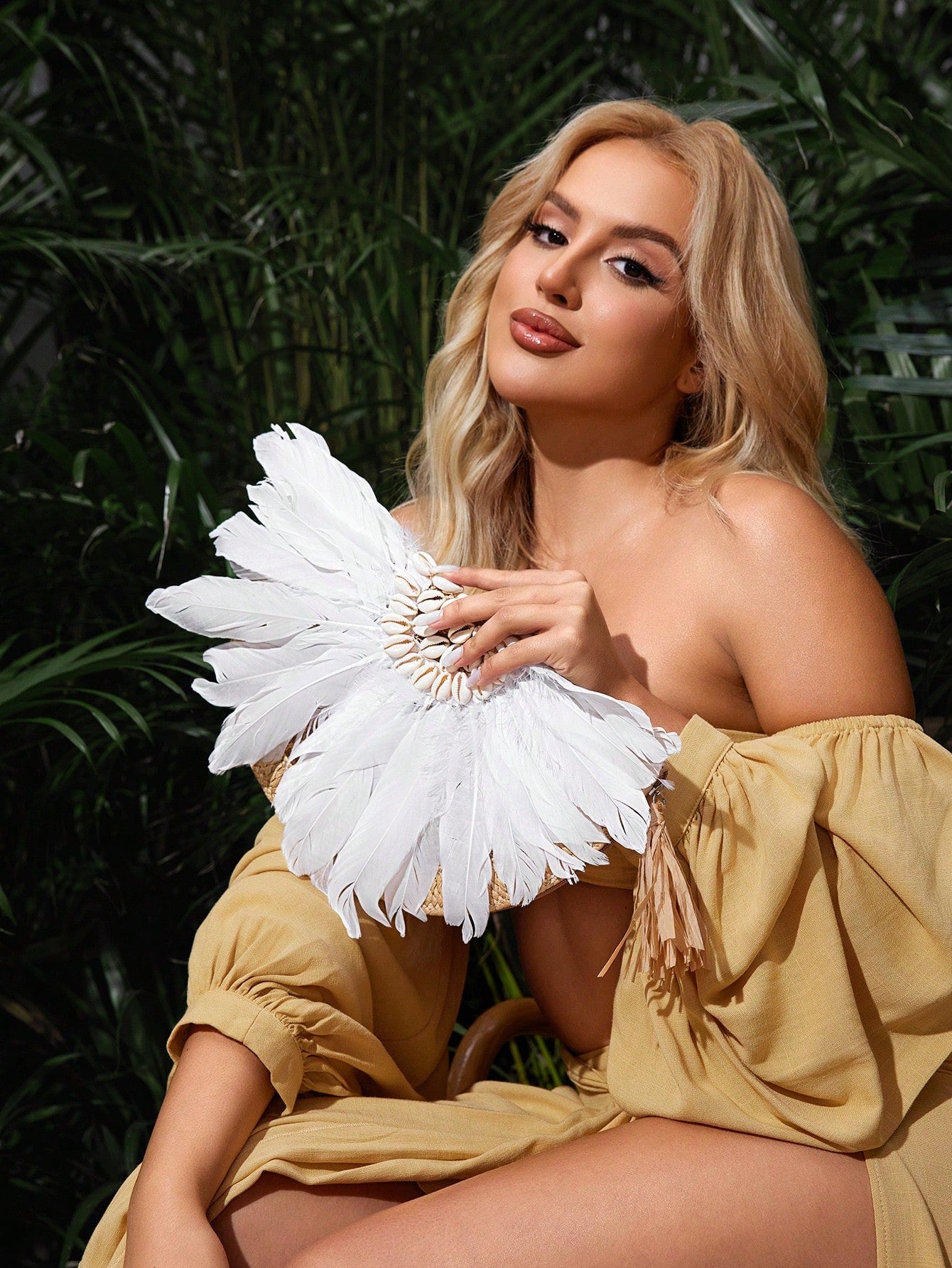 SXY Ladies,Women Clutchs, ,Woven Bag , Beach, Vacation, Holiday, Summer, Straw, Elegant,Artificial Feathers, Shell Decorations, Straw-White