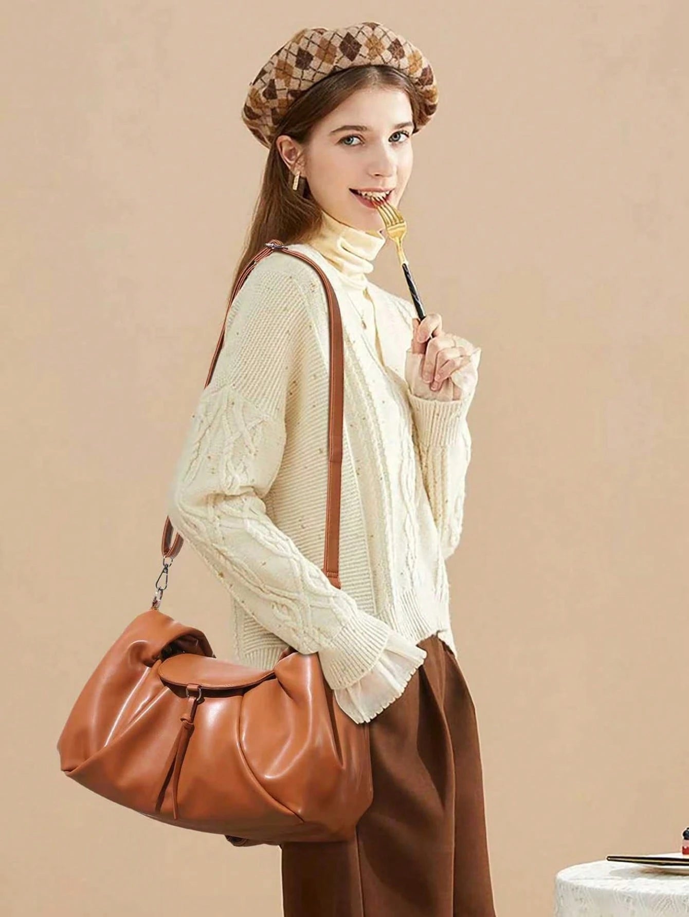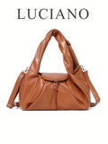 Women’s Brown Retro Tote Bag – Large Capacity, Pleated Design, Adjustable Strap, Versatile for Daily Use, Travel & Parties.