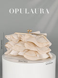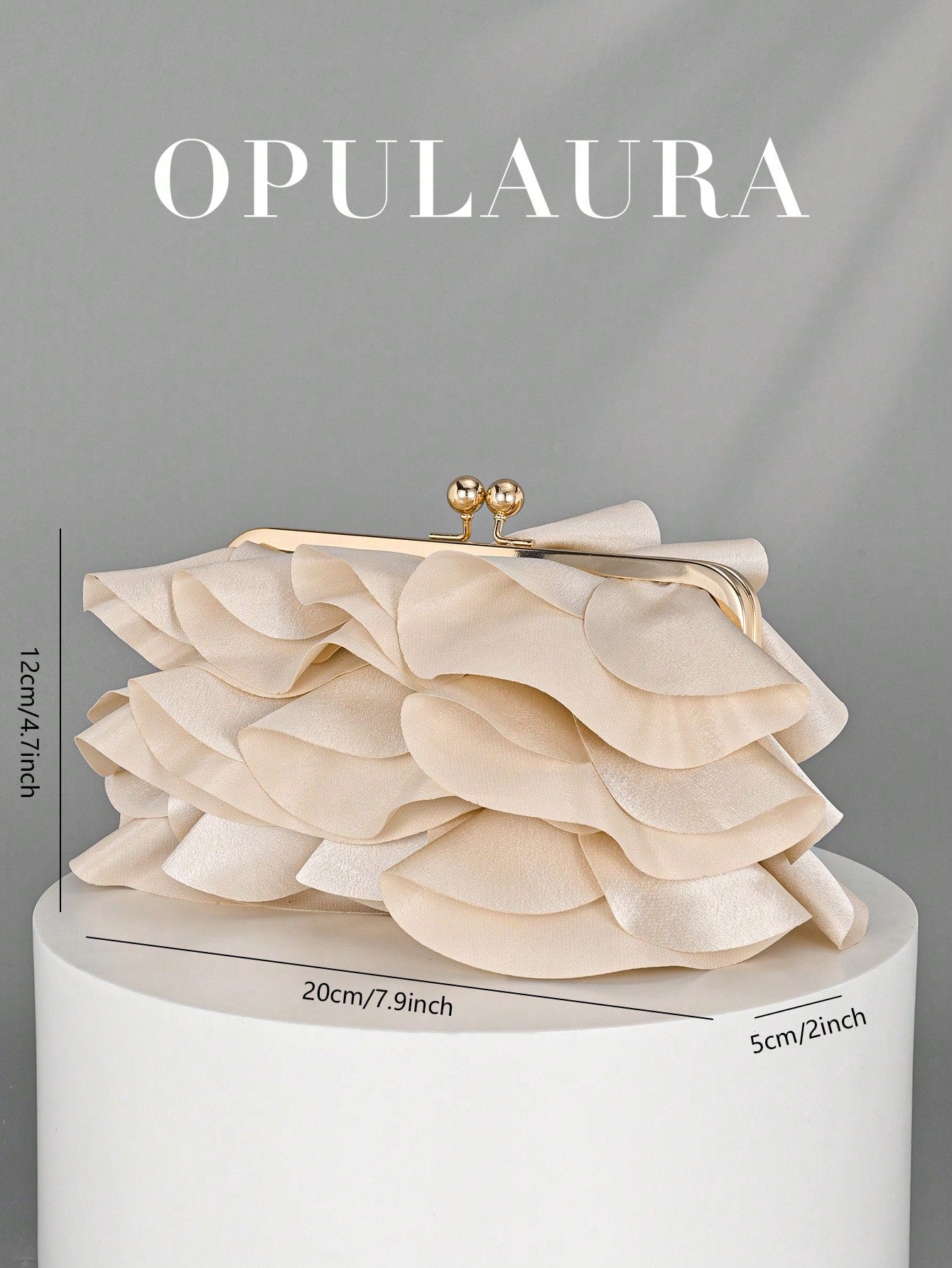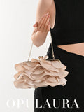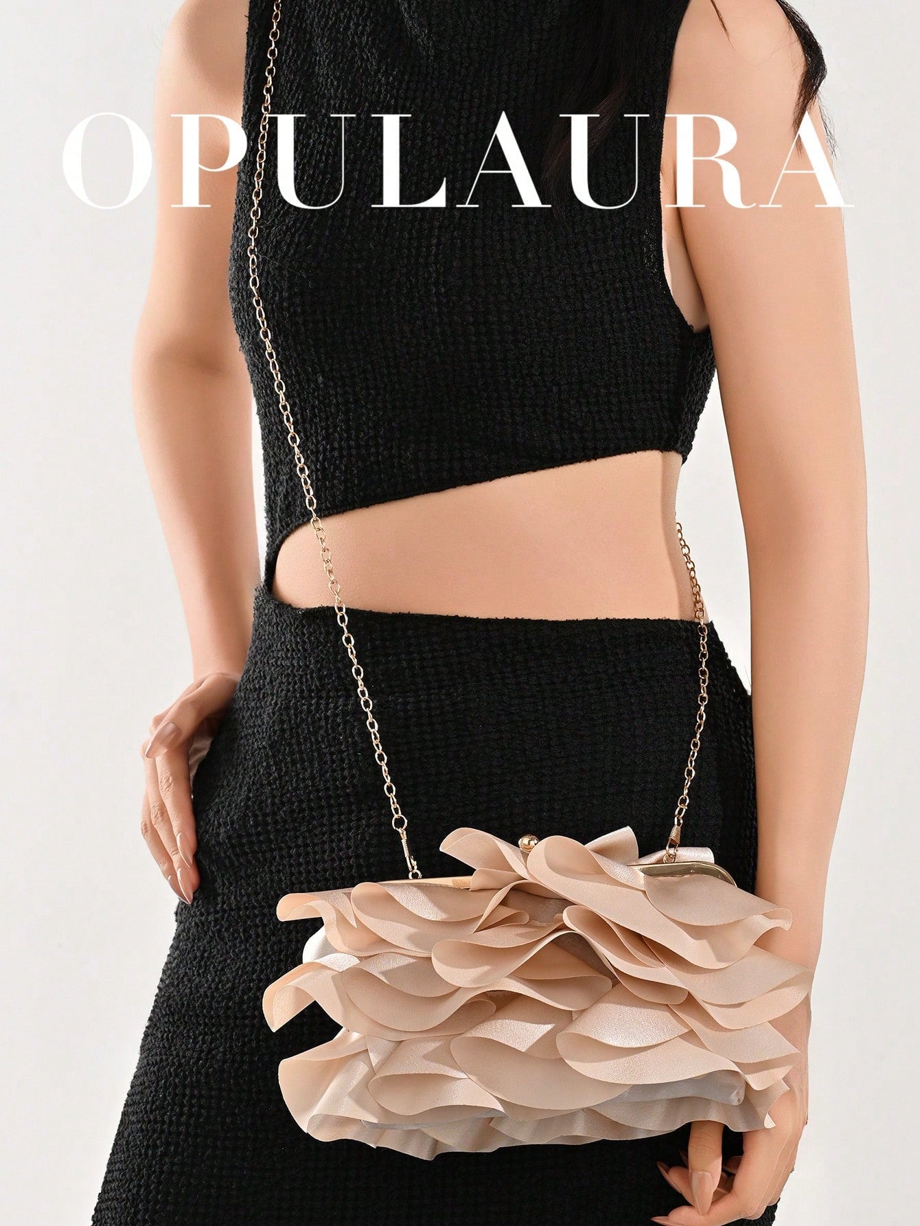 Women’s Petal Clutch – Elegant Ruffle Design Evening Bag with Chain Strap-Apricot