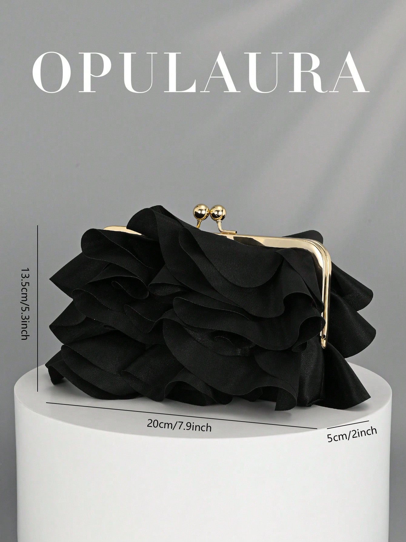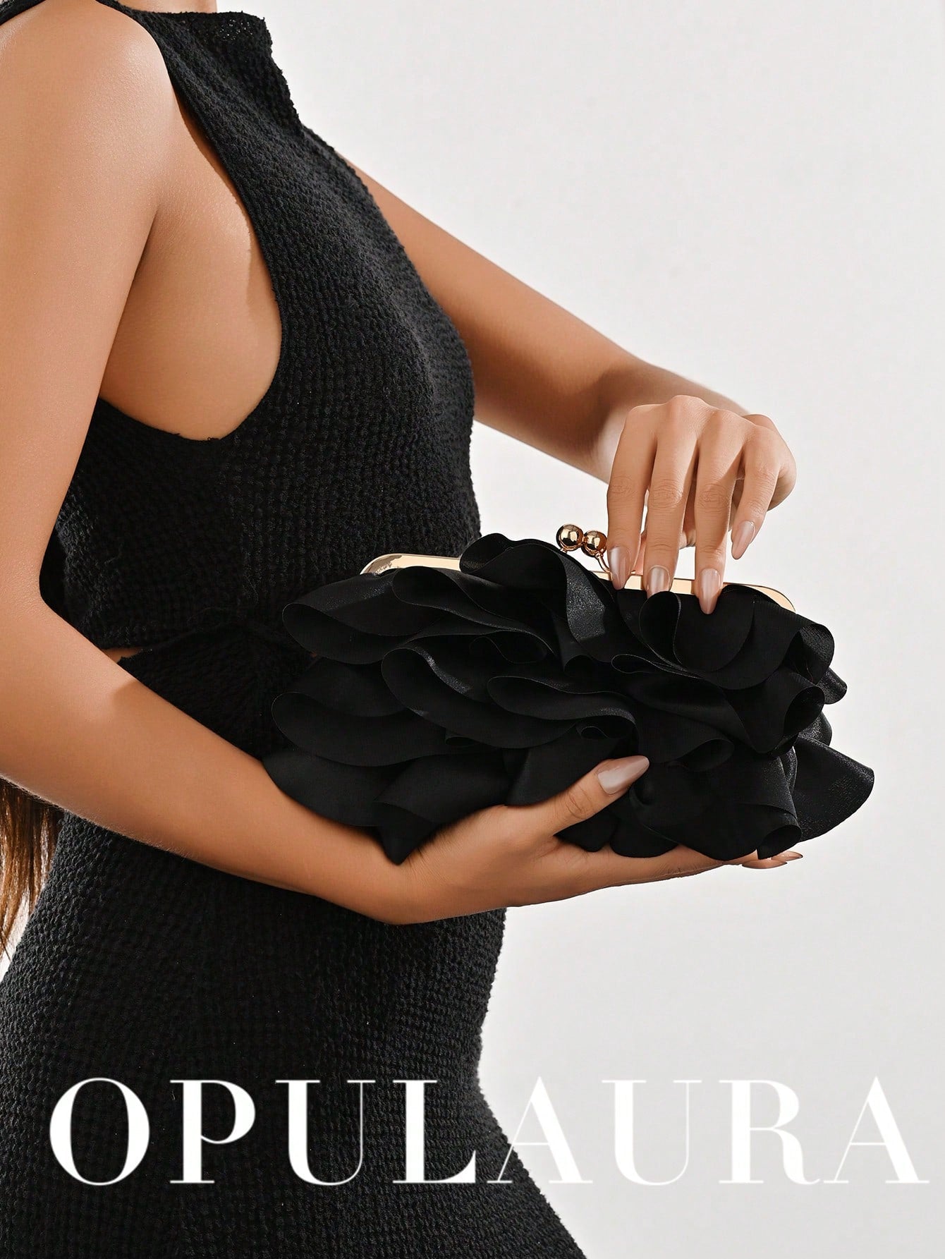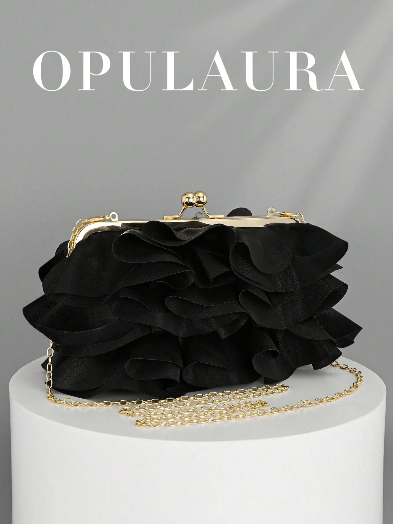 Women’s Petal Clutch – Elegant Ruffle Design Evening Bag with Chain Strap-Black