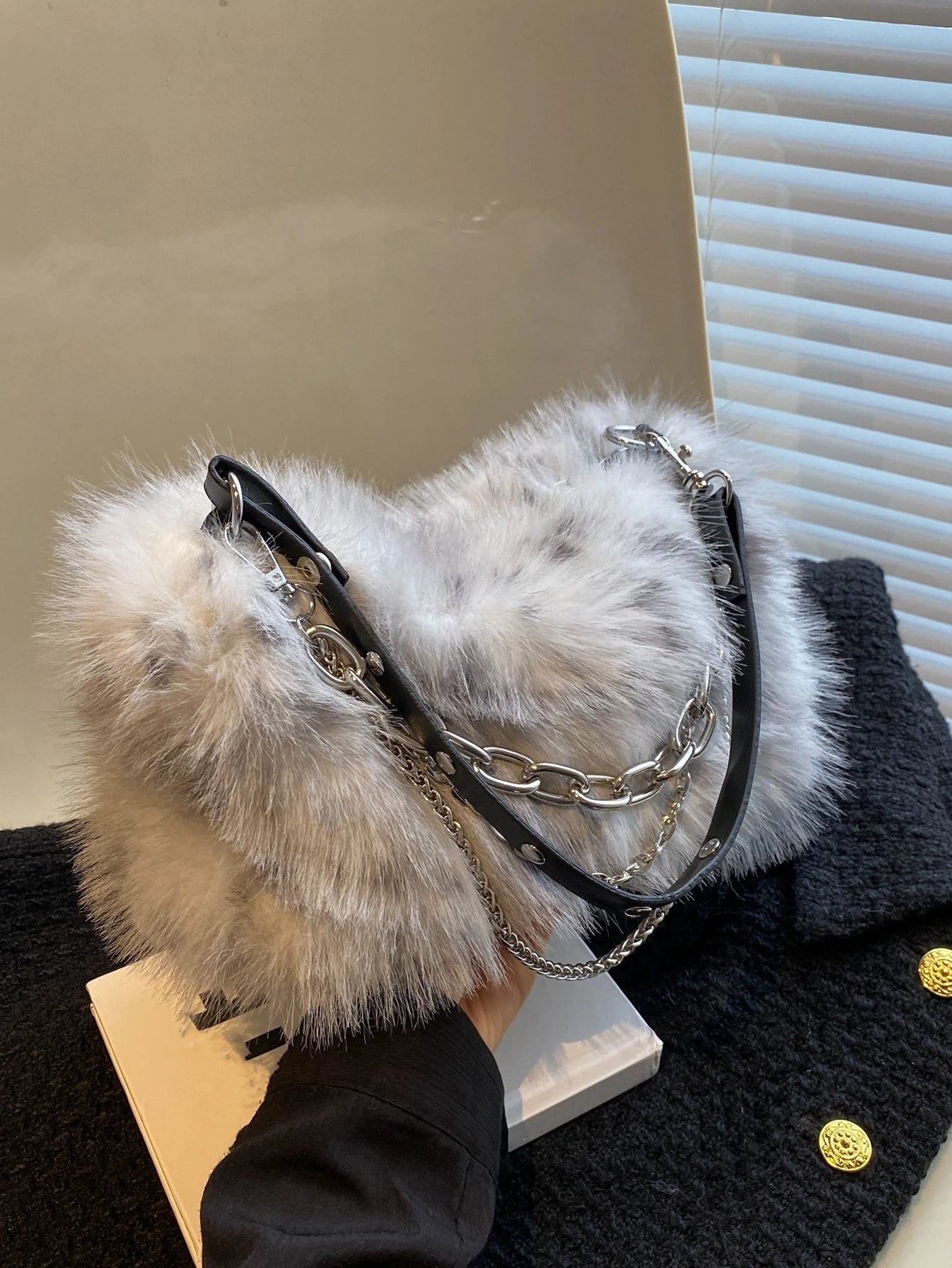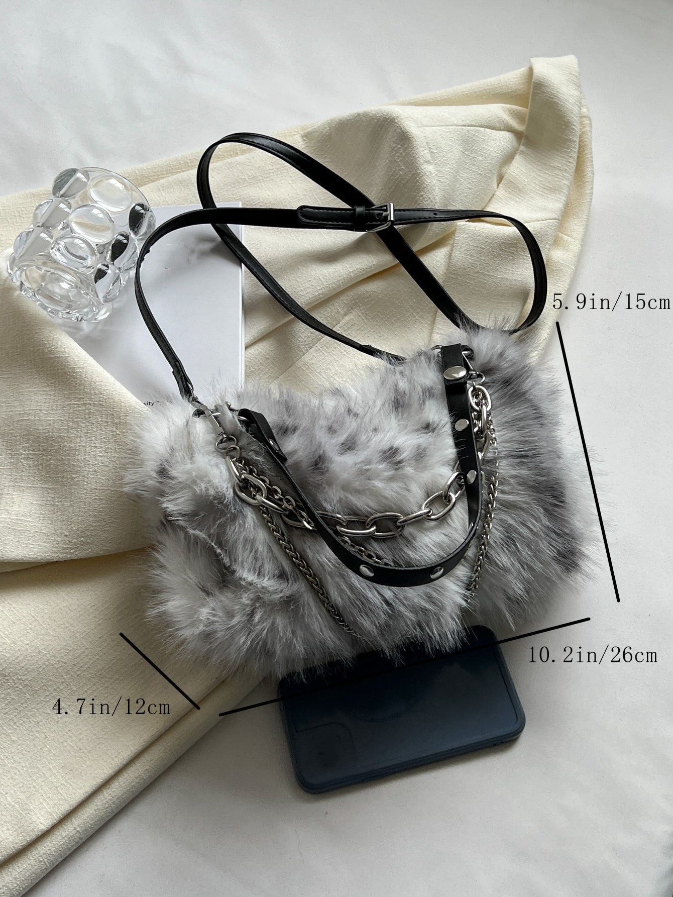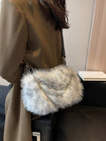 Women's Burgundy Leopard Spotted Faux Fur Shoulder Bag With Chain, Fashionable For Autumn/Winter-Multicolor