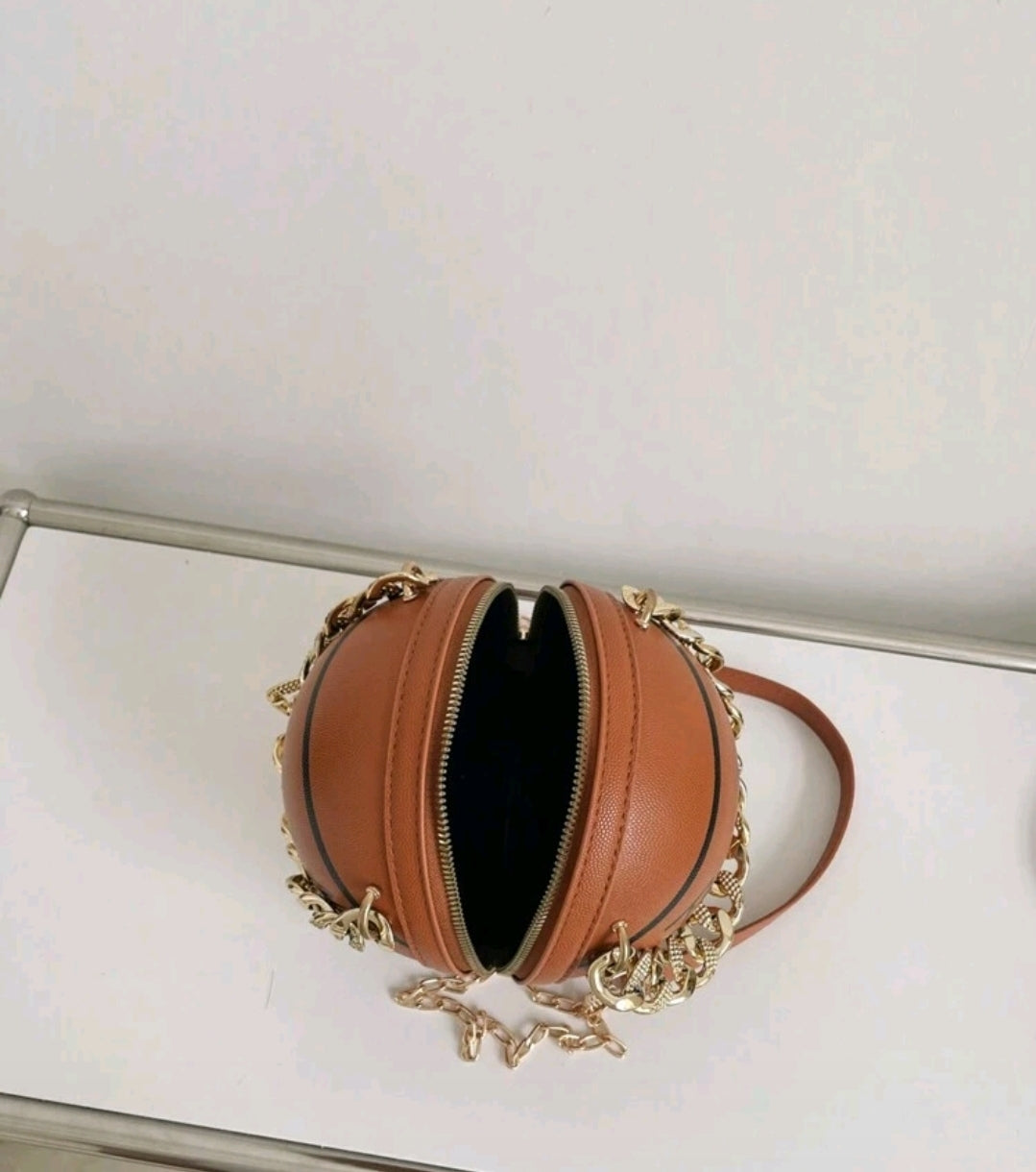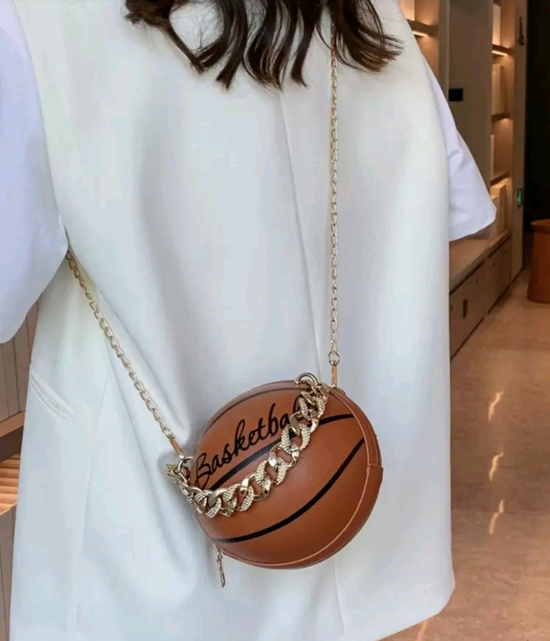 Women's Shoulder Bag, Novelty Bag, Basketball Shaped Chain Bag-Brown